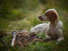 The first individuals of the setters were used exclusively for hunting game birds. The peculiarity of such dogs was their way to lie down on the ground when detecting prey nearby, this technique was actively used for hunting at that time with the help of nets. At the same time, these dogs began to be actively used in classical gun hunting and shooting at flying and waterfowl. It is believed that the first individuals of this breed were created as a substitute for greyhounds and birds of prey.
