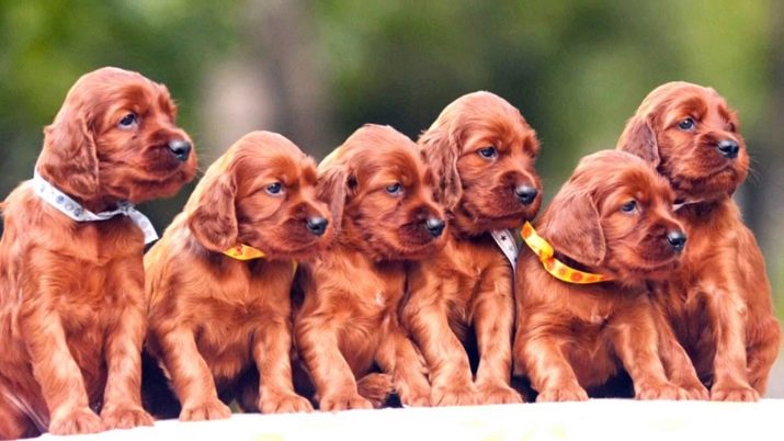 Irish setters appeared much later than the rest of the varieties of this breed. It is believed that these dogs were descended from black and white English setters, to which was later added blood and other European hunting dogs: Gordon setter, bloodhounds, Irish water spaniels. The result of this selection was the creation of Irish setters with a red color, but experiments on the appearance of dogs did not end there.