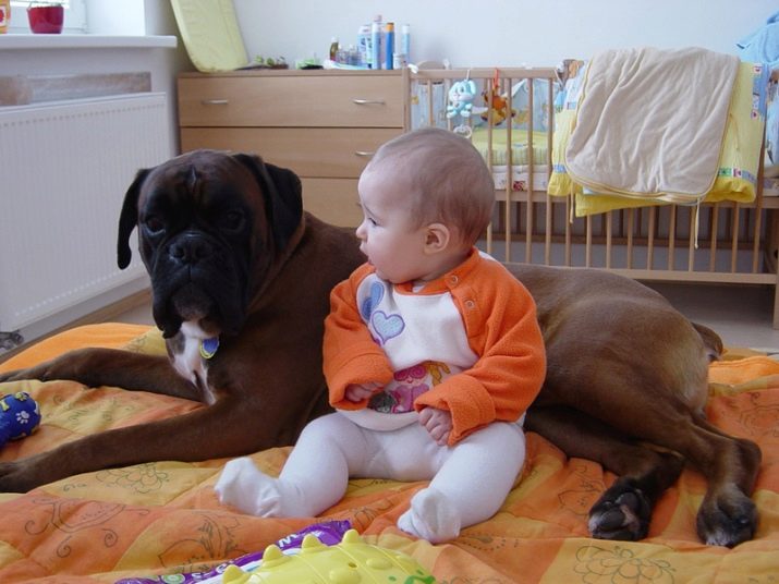 Boxers are fearless, but they are suspicious of strangers. They do not tolerate separation from the owner, it is difficult for them to remain alone. With proper education, they are very calm at home, but on the street they can bully other four-legged animals. Therefore, from a puppy's age, you need to train a boxer to communicate with your own kind.