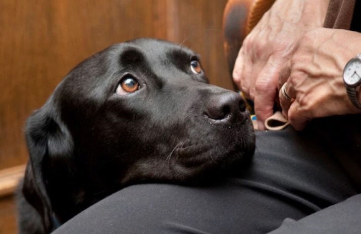 - Despite their seriousness, service dogs are sincerely attached to their master and can not tolerate loneliness.Inattention is not forgiven - they begin to cheat and dare to attract attention to themselves.