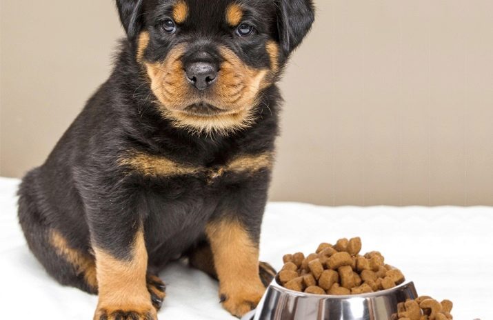 After each feeding, the half-eaten leftovers are thrown out, snacks for the Rottweilers are unacceptable - the animal must have strict food discipline.