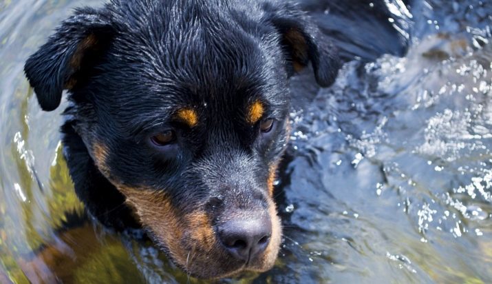 - Rottweilers are bathed no more than 2-3 times a year, in case of severe contamination, it can be rinsed with warm water or clean the soiled areas of the wool with a damp towel. For washing, it is better to use special shampoos for shorthair dogs, the optimum water temperature is 28-30 degrees.