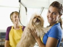 - Such salons are equipped with special haircut tables. The dog is first put on a collar, and then attach it to the bracket. At the same time, it can be adjusted so that the animal is at the height necessary for the master for more convenient work with his ward.