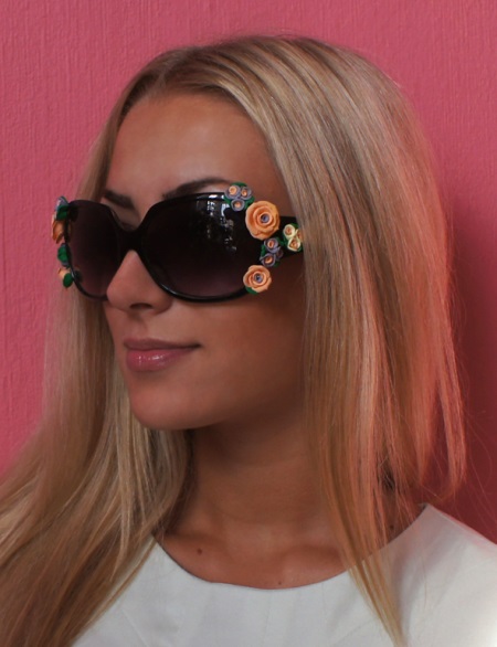 For the decoration of sunglasses, various overhead elements are still used: Volume applications around the lenses of the glasses, decoupage, rhinestones, stones, beads and much more.