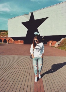 The original models are equipped with large glasses with a transparent jumper that unites them on the top. They have a rounded shape with slight bends at the upper edges. The unusual structure of the lenses will give the lady brightness and originality.