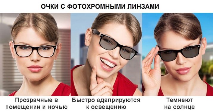 In addition, glasses protect makeup from wind, rain and snow. The most sought after models equipped with photochromic type lenses that can change color. On the street, their shade is darker and protects from the sun, in the room they become transparent. They are also called chameleons for their ability to change color.