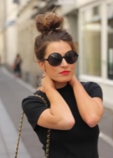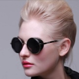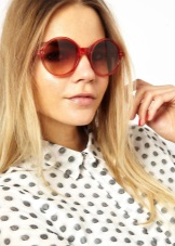 Tisheydy with black glasses look especially good in combination with red. Lipstick in red shades is the best friend of round sunglasses, because with its help you can create a bold, mysterious image. The use of satin fabrics will create a gorgeous festive look with round glasses.