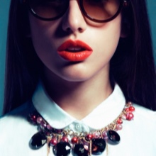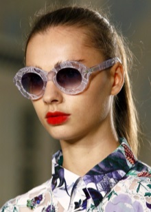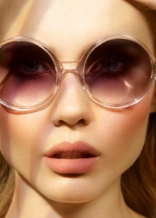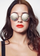 Happy owners of puffy lips can emphasize their individuality and originality by combining round glasses with bright lipstick of absolutely any color. For example, the image of the fatal beauty will perfectly complement the wine-colored lipstick and tisheyda with black lenses, and the everyday look will not be boring if you complement it with sunglasses with bright mirror glasses and a crimson lipstick. Do not be zealous with contouring, wearing round glasses - they already make facial features more expressive.