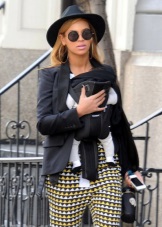 Round-shaped sunglasses can ennoble a light summer look, consisting of free silhouettes and rather frivolous textures - such as denim shorts with torn edges. The black color of the accessories - ethnic-style shoulder bags, classic tishades and an elegant wide-brimmed hat - helps to balance the set in light colors and add a touch of chic to the everyday look. The combination of round glasses with bright lipstick looks most beneficial when the color of the lips resonates in the elements of clothing.