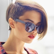 Round glasses add a special charm to girls with short hair: in this case, you can emphasize the beauty of the neck and shoulders with a choker or a thin scarf.