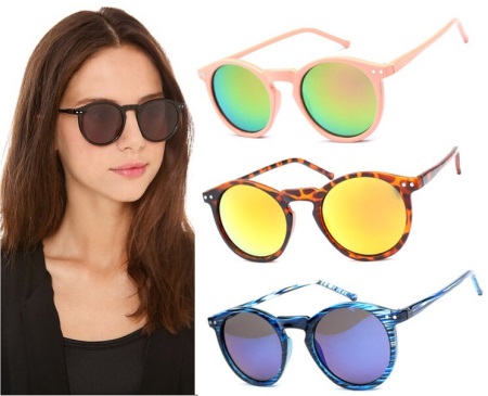 In recent years, colored mirrored glasses of various shapes have turned from a trend into a “timeless classic” - it is difficult to find a fashionista, among whose summer accessories there are no such sunglasses. The round shape will help to stand out from the crowd, add character to a familiar accessory, and give the image a special texture.