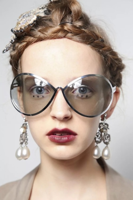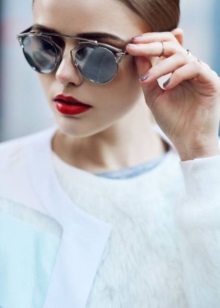 This model is extremely fashionable this year. It is distinguished by large lenses that give the image a hint of tender youth and fashionable infantilism. With oversized glasses, any girl looks younger. The image resembles a small child trying on glasses for adults. True, do not flirt. The size of the glasses should suit you. And remember, the word "oversize" refers exclusively to the size of the lenses. The frame should not be very wide. Glasses should hold well so that they do not have to correct all the time.