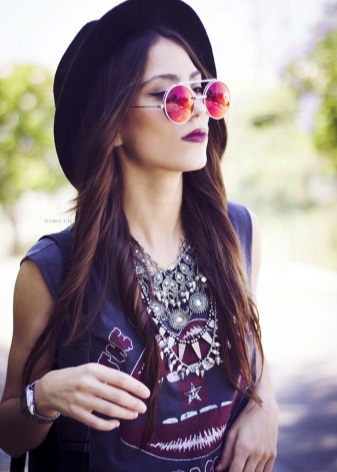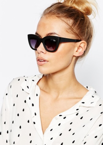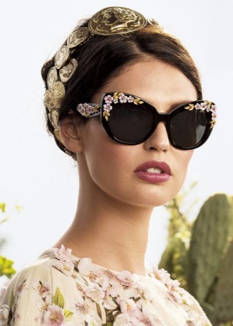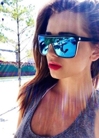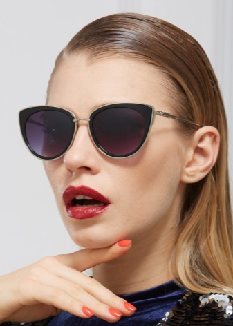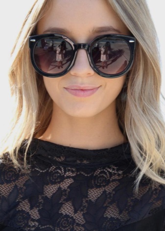 Very mysterious and mysterious look sunglasses with rich black glasses. This is a fashionable classic. Stylists advise all girls to purchase at least one model of such glasses. Their advantage is that for several seasons they have not gone out of fashion, so they can be used for a very long time.