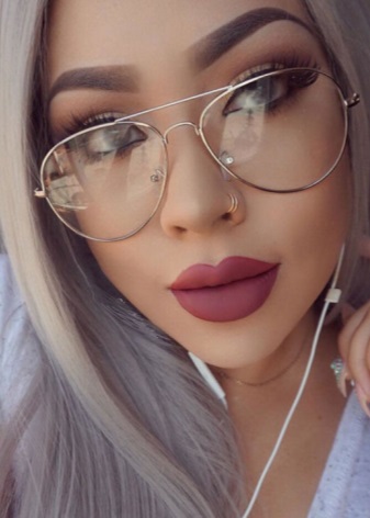 Certain facial features with glasses can be brightened up or spoiled.For example, for those who have a high nose bridge, fashionable aviators or any models of an explicit drop-like shape are suitable. Girls with a small nose need to pay attention to glasses with good nose pads. Properly selected glasses should not touch the eyelashes, nor should they lie on the cheeks even during a conversation or a smile.
