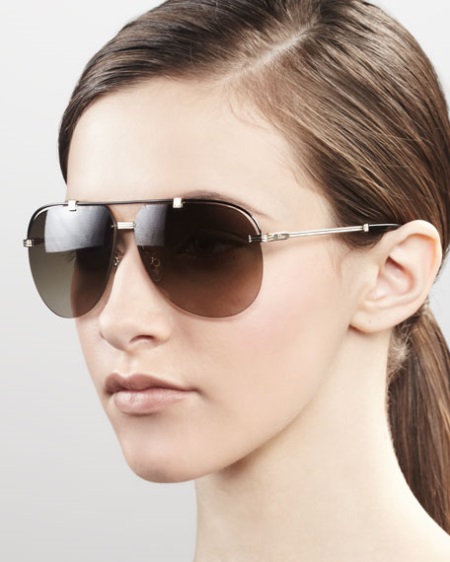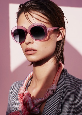 The range of sunglasses from this fashion house is distinguished by almost airy frames with drop-shaped lenses and sophisticated arches. Here you can see very gentle tones of glass and the active use of the gradient. Such glasses will perfectly fit into every urban look.