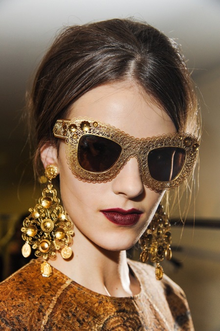 Many designers can not move away from the fashion of the past, reviving the favorite models of sunglasses in new collections. Thus, the cat eye or chanterelle glasses will become the undoubted trend of this year. These are playful, stylish and graceful models that can approach a romantic look, business or evening style.