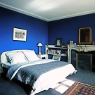 - Navy blue. Many residents of megacities are sure that the wallpaper should be dark blue, adjusting to sleep and rest. But this option is suitable only for those who are not embarrassed by dark shades, who can not only sleep in such a color environment, but also read, work, communicate.