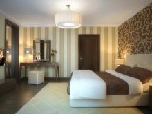 - Ornament. This is a pattern that repeats at a certain interval. A very large and colorful ornament will give the bedroom such dynamics that it cannot be called a room for relaxation. Too small and frequent will become a distraction. It is good if the wallpaper ornament is in tune with another element of the interior, it is not very bright, not very colorful and does not attract all the attention.