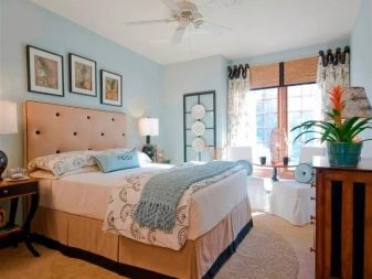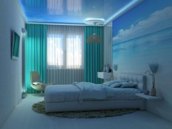 - in a hot bedroom, do not buy fire-colored wallpapers associated with heat, but pale blue and aquamarine wallpapers with a smooth shiny surface will only come in handy in such a bedroom;