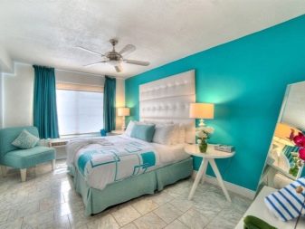 - Turquoise and different shades of blue. For those who fondly love the sea and miss it, such walls may seem like a good investment in a partial visualization of a dream. You will wake up and fall asleep in the color of sea water and clear skies, and your mood will increase itself. Blue and turquoise really have a relaxing, calming effect.