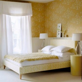 Yellow color invigorates, only whether it is necessary in the bedroom. But you can choose muted shades of yellow, if you really want to stick colored wallpapers in this room. Yellow diluted with milk is a very good option. Another controversial color can be called purple. For many people, it causes concern, so in the bedroom this color is not so good. But a softer lavender shade may be appropriate in the room, especially if the furniture is soft, calm colors.