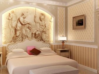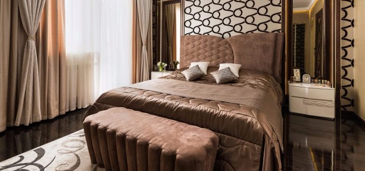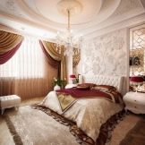 Here, almost everything depends on taste and style, as the size of the room allows you to experiment with materials. First of all, they think over the color and quality of wall decoration. Champagne, gold, Bordeaux wallpaper look spectacular in a large bedroom. Besides wallpaper, consider: