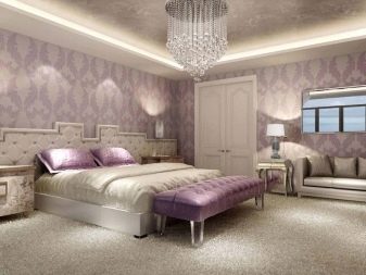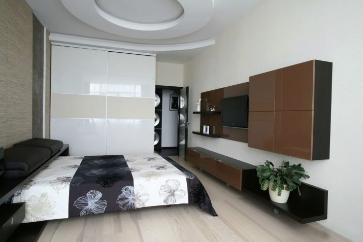 For the bedroom, multi-level options with a large number of ledges and other elements are not recommended. The maximum number of tiers is two, and transitions, parts and elements must be smooth, rounded.