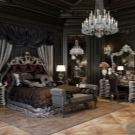 It is unlikely that the bedroom in the Gothic style, and even aged in black shades, will leave indifferent lovers of American fairy tales and medieval stories. Gothic is distinguished by a combination of mysticism and exquisite subtle aristocracyAnd it is black color that in many respects contributes to the creation of the desired impression. Such bedrooms usually involve the use of expensive paraphernalia - antique furniture, stained-glass windows and murals.