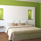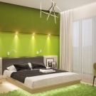 - Green shades psychologists consider soothing, and not in vain - experimental studies confirm that color has a beneficial effect on the fight against stress, so green suits the bedroom as well as possible. Now complex composite shades of green are in fashion - in particular, olive color or dark deep green, but traditionally emerald and light green with a touch of yellow also look good.Since green is a very complex color and has many shades, the combinations with it are also diverse: peach, brown or fuchsia are suitable for cold green options, and for warm shades a good combination will be gray, blue or white.