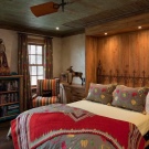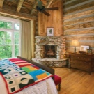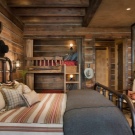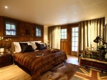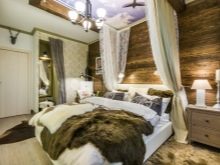- Another version of the rustic style is chalet style, which decorates the houses in the Alps. It can also suit perfectly for a bedroom - it is enough to trim the walls with a dark wooden lining, purchase leather furniture, natural fur and dense linen look good. The color scheme of this style is extremely restrained and represents natural shades.
