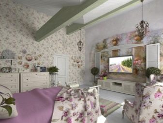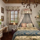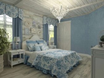 - Provencal style many will also like it: it is a characteristic design for village houses in the French provinces, it combines simplicity and sophistication. This style is characterized by brickwork or ceramic tiles, and the furniture is usually wooden and with a simple design, painted in light pastel shades. A special place in this style is given to all kinds of textiles: these are light and multi-colored fabrics with floral and floral ornaments that create lightness and a unique atmosphere in the interior. More often this style is chosen for a woman’s bedroom, however, with minor adjustments, it may well be universal.