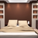 The color scheme in the interior design of the bedroom can be very variable. Nevertheless, most often, rather restrained tones are preferred for her, and bright saturated colors are rarely used. The interiors of small bedrooms are usually tried to be furnished in light color shades, while in the spacious bedroom there is more freedom for creativity - you can consider both light and dark colors.