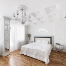 - Stretch and suspended ceilings - An excellent modern solution that will make the surface perfectly smooth. They are also very diverse in their design, however, minimalistic models in white shades will look better in the bedroom. The design feature is the convenience of organizing lighting - you can easily place the lamps in any place by hiding the wires above the surface.