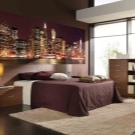 - Photowall-paper is another interesting option, which is appreciated mainly by connoisseurs of modern interiors. You can choose a variety of interesting options: very often in the bedroom there are photographs of views of beautiful cities, the sea, rural landscapes or flowers. Such solutions look great, allow you to revitalize and diversify the interior. It should be borne in mind that the entire wall photograph is an accent in the design and it is better not to cover it with cabinets and shelves - for this, your room should be spacious enough.