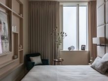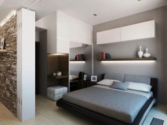 If you have a small bedroom, you need to pay attention to make good use of corners - often this functional space in the interior is left empty, however, the correct use of corners can significantly help you save space in your room. For example, in the corners you can place small racks, shelves, cabinets and even a corner dressing room. It will be very convenient and will allow to unload the space in the center of the room.