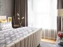 - It may look very interesting masonry or stone tiles. This is the perfect solution for modern interiors, for country-style, Art Nouveau and colonial-style bedrooms. The color of the brick or stone can be chosen depending on the other features of your design. Covering with such a tile will be very versatile: you can use it as the only option for decorating all the walls, or combine the tile with other finishing materials - for example, with any wallpaper or regular painting.