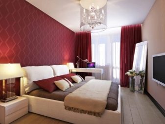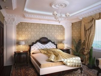 - Textile wallpaper is also often often chosen - they look luxurious in popular classic interiors, as well as in the Art Nouveau style with elements of art deco. Most often this wallpaper with complex, but pale ornaments that look very elegant and excellent for interior design of the bedroom is an aristocratic, calm and luxurious interior in which you will feel comfortable.