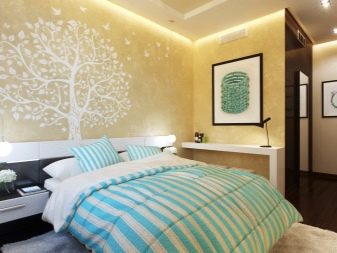 - Now also often used all kinds of wall painting - it can be single-color painting or color variation on different walls, you can apply paint smoothly or create a texture. Painted walls always look great and fit almost any style, everything will depend solely on the color palette and on the nature of the painting. Different options can look very stylish, and you can even paint the walls in the bedroom with your own hands.