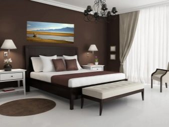 - Chocolate shades They can also perfectly suit your bedroom: they can be combined with both lighter and darker tones; this solution is mainly chosen for spacious rooms. Chocolate tones can be perfectly combined with both cold and warm colors. For example, they blend well with gray, blue, white, beige, purple, navy blue and burgundy.