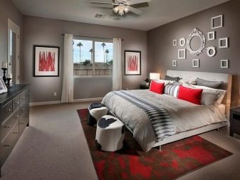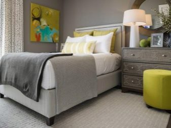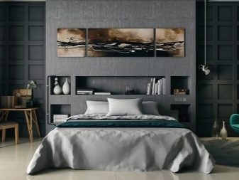 - Very often the bedroom is finished in gray tones - this is a fairly neutral solution that always looks good, allows you to create a harmonious design and leaves plenty of room for creativity. You can diversify a gray interior with the most various accessories, and all of them will look harmoniously: neutral monochrome base withstands a variety of different textures, shapes and colors.