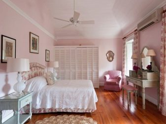- Bedroom in pink suitable for romantic natures - such a decision is often chosen by women, however, when choosing the right shades and combinations, the interior in pink colors can be quite neutral and universal. Avoid saturated pink colors, which can irritate the eye in the bedroom, pastel shades should be preferred. Pink can easily be combined with lilac, purple, gray, emerald green, terracotta or bronze. Such a solution will look good in both a small and a large bedroom, and the possible styles are also very diverse - from classics to provence.