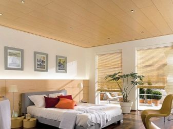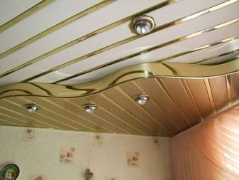 - For modern interiors, the simplest and most inexpensive finishing material will be plastic panels. They can easily glue the ceiling, covering unsightly places. Panels are different in their color shades and texture features.