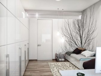 Also worth choosing high racks and cabinets to the ceiling - you can buy a small ladder to them. In addition, you can replace the bed with a sofa and fold it in order to save space.