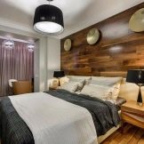 Laminate for wall decoration is selected depending on the design of the room. In any case, do not overzealous with its use, but limit yourself, for example, to the wall behind the head of the bed. The selected shade should be combined with the color of the furniture to create a holistic interior. It is better to refuse additional decor. Different styles of the bedroom involve the use of different laminate. Modern variations will perfectly “accept” the panels painted in bright colors and additionally coated with varnish.