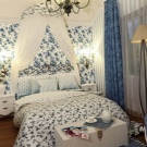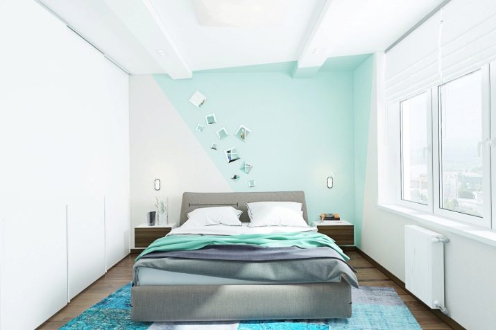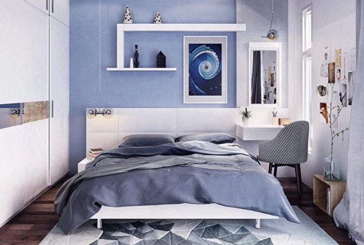 - An example of an original bedroom design in light blue using white contrast.