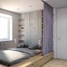 Zoning a small bedroom is complicated by the lack of usable area for each functional area. And yet it allows you to bring unobtrusive organization into space. This can be done by: