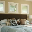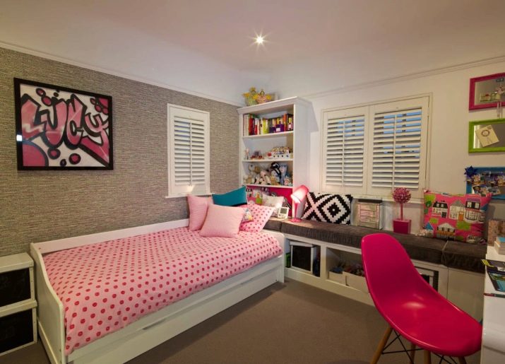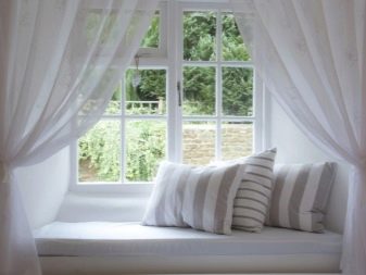 Window sills in such bedrooms can play the role of shelves or even impromptu tables. They can be used to install auxiliary lighting (for example, a small floor lamp or a lamp of modern design). Here you can place a pair of decorative pillows or fresh flowers. It can be either a beautiful vase or some kind of accessory (say, a small figurine).