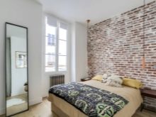 Wherein The texture of the material may be unusual. (for example, for plaster, gypsum, textiles, brick, concrete). You need to use the print correctly. The more complex it is, the less you leave the opportunity for making expressiveness through other elements of arrangement. Sometimes a brick wallpaper with a photo frame attached to the wall looks more interesting than large flowers and a laminate on the wall at the head of the bed.