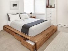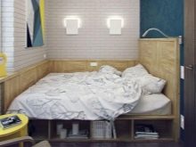 Each element of furniture in a small bedroom undergoes a kind of face control. There is often no place for a wardrobe, chests of drawers and bedside tables. Given the different type of room, you have to choose those options that will not complicate the layout. For example, in one case it will be a minimal set of furniture consisting of a bed on the podium, in which drawers for storing clothes are mounted.