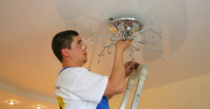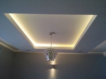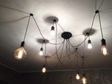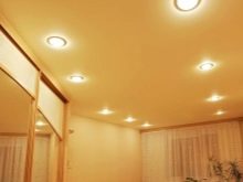 Do not overload the ceiling with a massive chandelier, and even on a suspension. Preference should be given to panel models, spotlights or even spots. Nothing too complicated, studded with decor, should not be. Even a modern design in the form of a spider lamp without shades will look more interesting here than classical chandeliers.